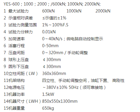 產品規格  YES-600;1000;2000;600kN;1000kN;;2000kN;YES系列經濟型數顯式壓力試驗機